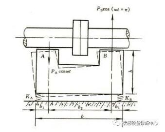 上图中,假设A、B两侧垂直振动同相,如果A、B两侧支承刚度也相同,那么径向振动不会激发轴向振动。如果A、B两侧垂直振动反相,或者A、B两侧垂直振动同相,但两侧支承刚度不对称,这两种情况都会导致轴承座的轴向振动。