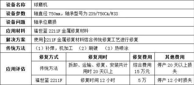 采用福世蓝2211F金属修复材料和技术可实现现场修复,无需对设备进行大量的拆卸,修复过程中无高温产生,不会对轴本身造成影响。福世蓝技术产品特有的粘接性能、耐压性及良好的“退让性”等,在修复此类问题时体现出快速、方便、耐用的特性,为企业节省大量宝贵的时间。福世蓝技术材料的合理应用,在企业现代化生产工艺流程中有着举足轻重的价值体现,在帮助企业完善设备管理手段的同时,可以最大限度的保证生产线因停机、停产而带来的经济效益损失。