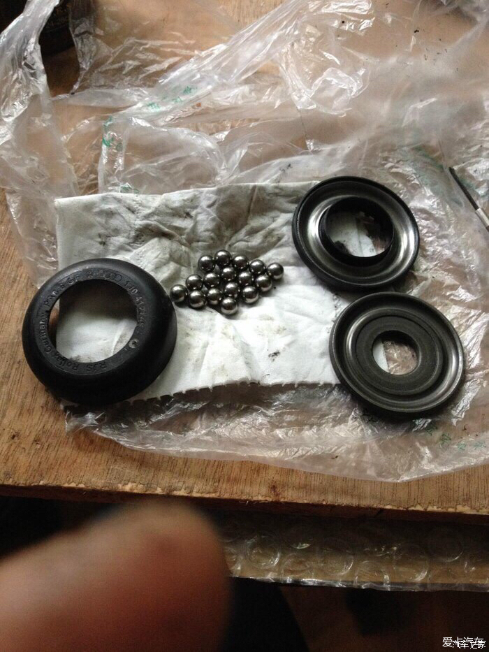 顶胶的缝隙已经很大了,大约10mm,年初就买了顶胶和平面轴承,但是一直没时间更换,由于老的顶胶已经老化失去弹性,走起颠簸路面影响行车质感,甚至对塔顶也有一定的伤害,昨天抽出时间更换了顶胶和平面轴承。