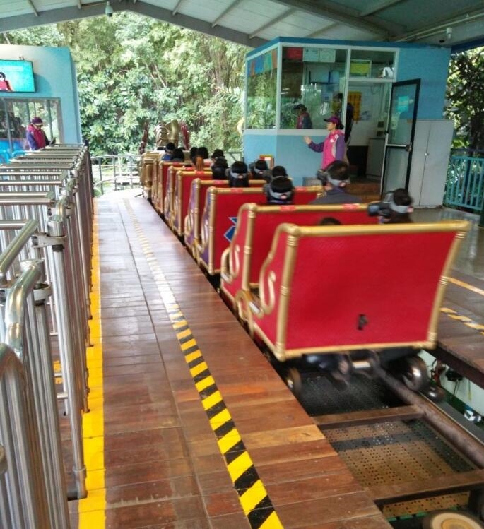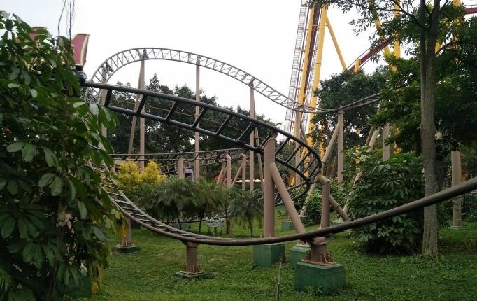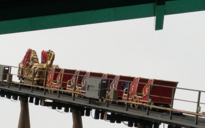 过山车好完又刺激,一台过山车能坐上几十个人,长长的一排,在高空轨道上高速穿行。车上的人们尖叫声随着过山车的左拐弯,右拐弯,向上爬升,向下俯冲,一浪又一浪地向天空中传来。