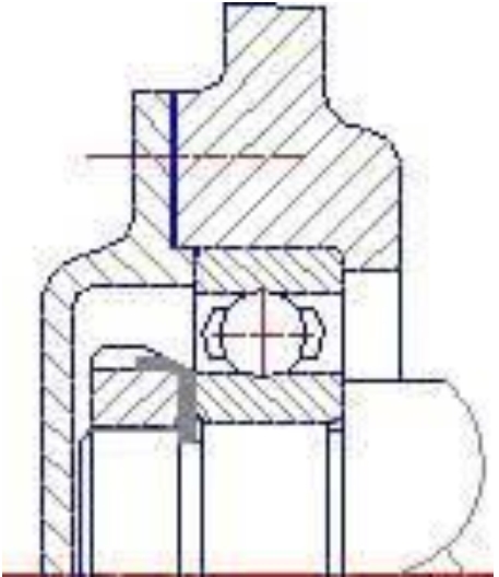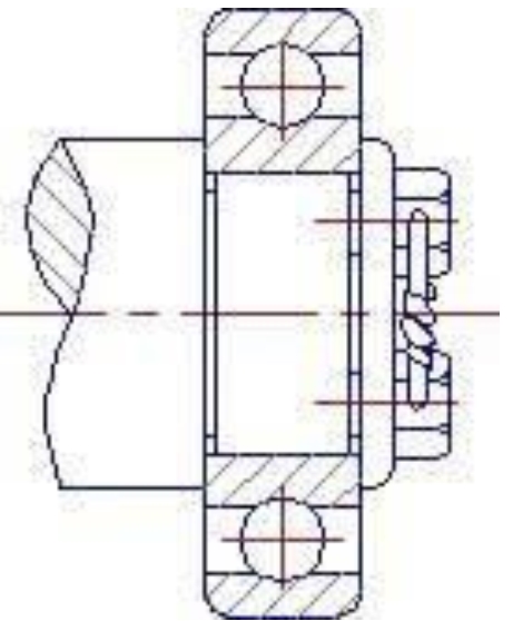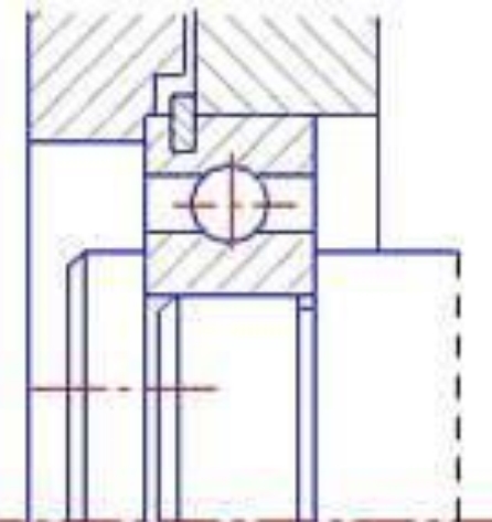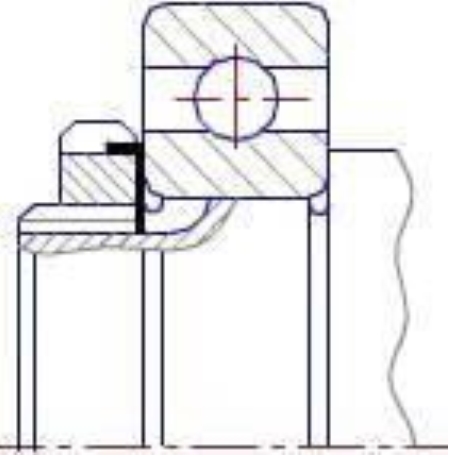 e)用嵌入外壳沟槽内的孔用弹性挡圈紧固,主要用于轴向力不大且需减小轴承装置尺寸时;