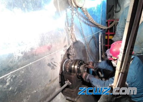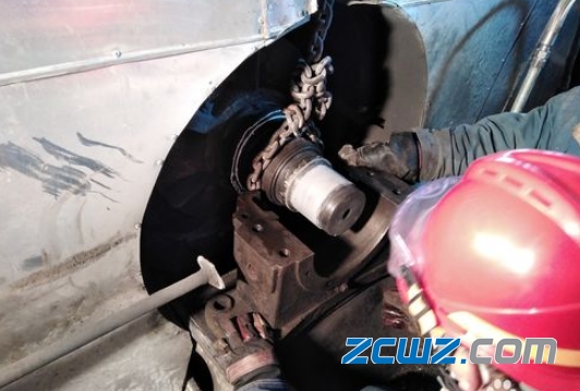 5、拆卸工装后内侧有一块未填充实的地方,去除排料槽多余材料后测量修复后的轴颈尺寸Ø120加0.1mm左右,用砂纸对轴颈进行打磨处理后用无水乙醇进行清洗。