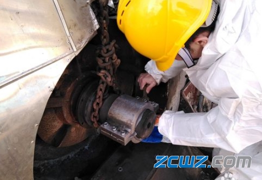 2、首先把轴颈处理干净,烧灼在轴上的轴承内圈清理干净。用乙炔火焰对轴颈烤油后用磨光机打磨轴颈,空试修复工装。