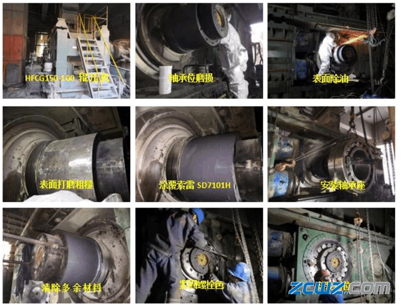 辊压机轴承位磨损修复步骤如下:
