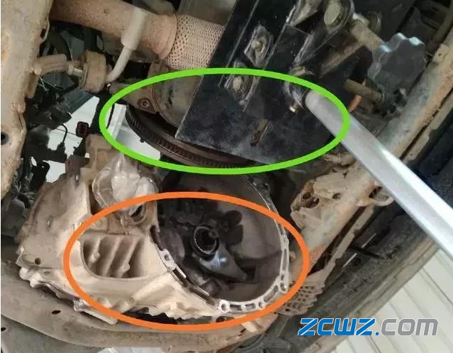 无奈之下,车主同意师傅拆开发动机和变速箱,检查分离轴承!更换汽车离合器三件套的工作是比较复杂的,师傅需要把变速箱和发动机分开才行,需要花费很多的时间和精力!