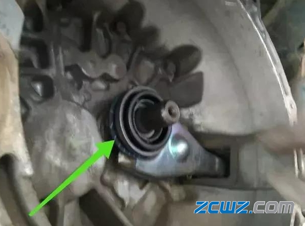下图绿色箭头所示,汽修师傅已经把新的分离轴承给安装好了!