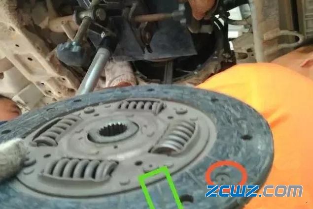 下图所示,这是车主去年换的离合器片,从橙色区域的磨损标记可以看出离合器片不用更换!同时,离合器压盘也不用换,因为车主去年才换过新的离合器压盘和离合器片!