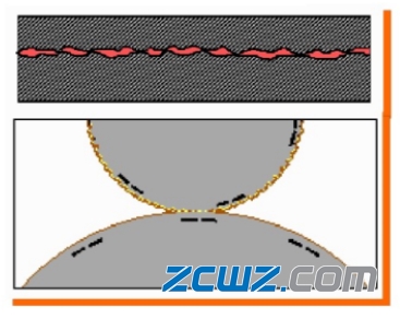 上图显示为轴承部分润滑,实际工作中的承载润滑膜以及接触表面。