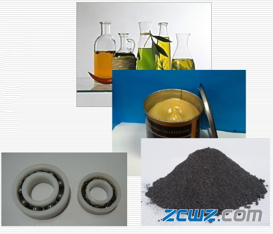 5、固体润滑剂:在相对运动的承载表面间为减少摩擦和磨损,所用的粉末状或薄膜状的固体物质。它主要用于不能或不方便使用油脂的摩擦部位。常用的固体润滑材料有:石墨,二硫化钼、滑石粉、聚四氟乙烯、尼龙、二硫化钨、氟化石墨、氧化铅等。