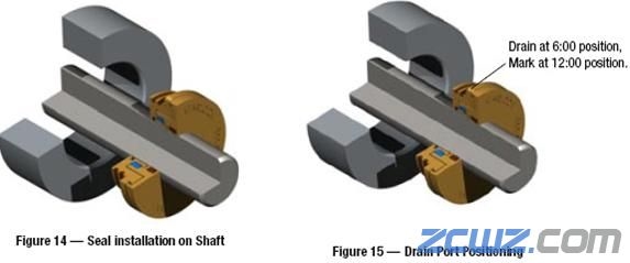 轴和孔的任何缺陷都不能影响油封的安装。缺陷的类型有螺旋形加工痕迹,锋利的倒角,划痕,镲伤,缺口,和侵蚀等等。清除所有的外来的瑕疵。在很多的例子中,轴由于旧的油封的磨损会留下一个凹槽。要注意并且保证新的隔离器的O型圈不要密封在同一个位置。