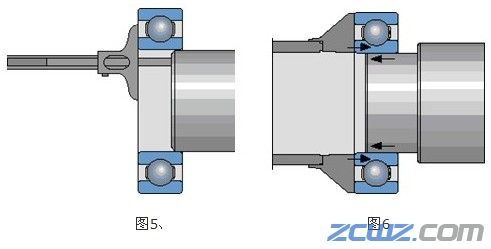 9、 轴承箱(座)为过盈共同:运用矿物油细微光滑轴承的外圆外表。装置时,确保轴承装置后与轴承箱(座)垂直,运用适宜的套筒施力在外圈(图7)。