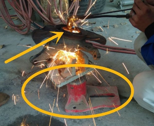 下图所示,火花四溅!汽修师傅正在切割转向节内的轴承外圆!车主看到了,说这有一种打铁花的景观!也别说,确实很像!