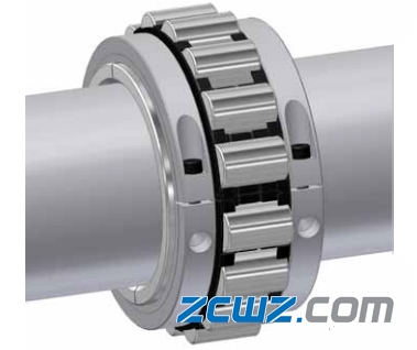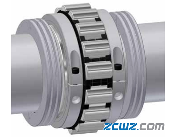 在保持架和滚柱上涂润滑脂,并轻轻地在内圈(已安装在轴上)表面涂满润滑脂,作为保护。将保持架(连同滚柱)安装在内圈上。两半保持架扣合在一起,不同的方式取决于尺寸和轴承系列。