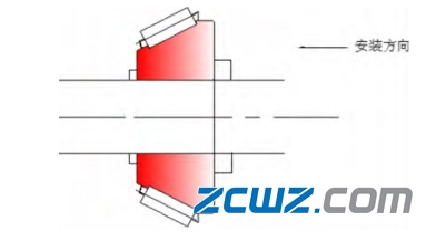 圆锥滚子轴承安装简图见图5。将轴承小端先进入轴颈,采用敲击大端面的方式,将轴承安装到指定位置加以固定。