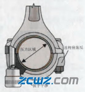 原因:由于连杆在交替负荷下发生弯曲,轴瓦的安装腔变成椭圆形,导致轴瓦也有形成这种形状的趋势(如图5所示),因此轴瓦内表面形成椭圆形。由于内腔变形,轴瓦的分隔间隙明显减小,这将导致抗摩擦合金与曲轴颈部之间的金属发生撞击。