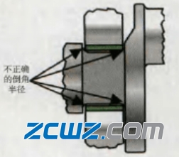 纠正:研磨曲轴轴颈,获取正确的倒角半径;不要再曲轴上留下尖倒角。否则会在这些载荷区域出现应力集中,削弱曲轴强度。