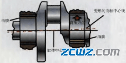 原因:曲轴变形导致主轴瓦过载,在最高扭曲定形成高压,这将导致曲轴与轴瓦之间的间隙减小,或轴瓦和曲轴颈部发生撞击。由于运输、存放方式不当,或者极端条件下运行度可能导致曲轴变形。