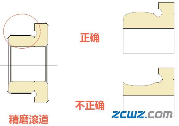 2)两端磨量不均,导致滚道不对中,挡边磨不出;