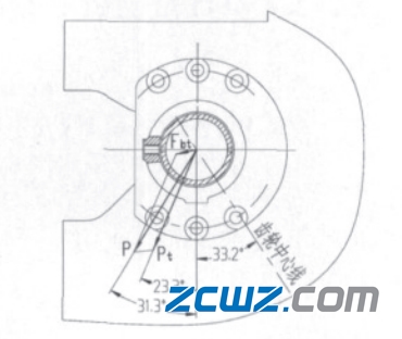对比观察柴油机两次烧坏的轴承套发现,轴承套内孔表面烧伤严重部位都位于方位相同的布油槽(每个轴承套2条布油槽)的同一侧表面(见图3),且轴承套安装到轴承座后的该布油槽的方位也基本相同(见图4)。由此得到启示,是否是布油槽的位置不合理,在轴承套受力方向不能形成油膜所致?于是从轴承套受力和油膜形成角度进行分析和排查。