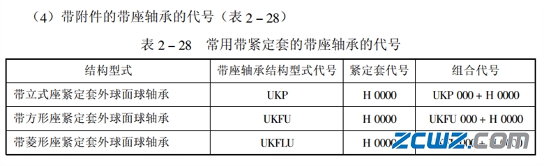 3)内径代号带座轴承的内径代号以座中轴承的内径代号表示,其表示方法按表2-5的规定。