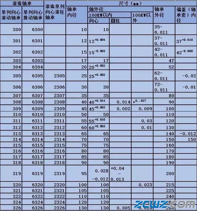 一、轴承与轴、与端盖配合紧力表