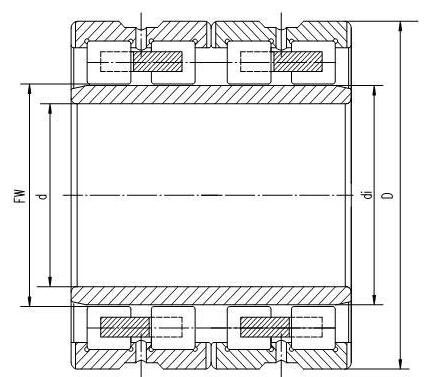 基孔制:采用基孔制的方法,由外圈滚道和滚子组合后的滚子运动轨迹形成的轴承内径即内复圆FW为定值;通过加工选用不同尺寸的内圈外径(di)值产生的不同组别的轴承出厂径向游隙的方法;