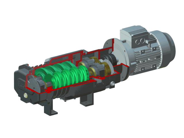 众多真空获得设备中干式真空泵具有环保节能、稳定性高、泵腔内无油、结构紧凑等诸多优点,是真空获得设备中重要的一类。其中干式螺杆真空泵保证泵腔内无油或其他工作介质这一重要特点,解决了大多数真空获得设备正常工作状态下,泵腔内的润滑油脂或其他工作介质由于返流和物理扩散进入所抽容积内,致使真空室受到污染这一现象的发生,被广泛运用于半导体、化工、药品等工业制造领域。