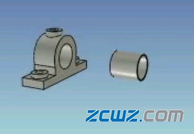 整体式径向滑动轴承由轴承座、整体式轴套等组成。轴承座上设有安装润滑油杯的螺纹孔。在轴套上开有油孔并在轴套的内表面上开有油槽。这种轴承的优点是结构简单,成本低廉。它的缺点是轴套磨损后,轴承间隙无法调整;另外,只能从轴颈端部装拆,对于质量大的轴或具有中间轴颈的轴,装拆很不方便,甚至无法实现。所以这种轴承多用在低速、轻载或间歇性工作的机器中。