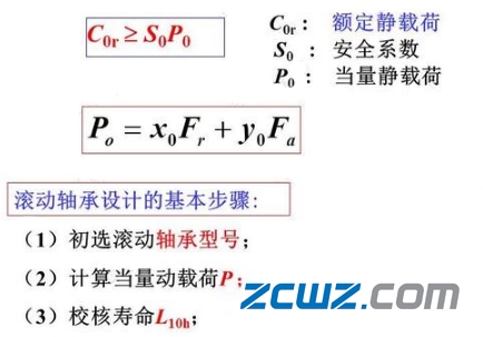 2、对于不转动、摆动或转速低(n≤10 r/min)的轴承,要求控制塑性变形,只需进行静强度计算;