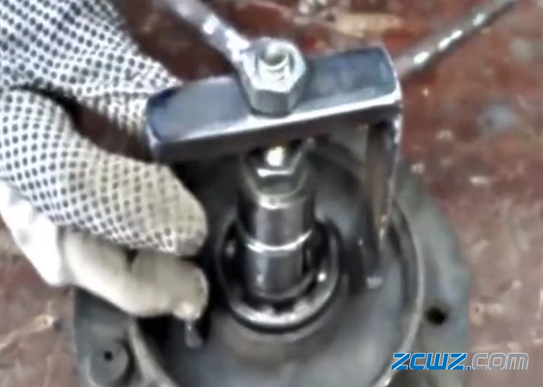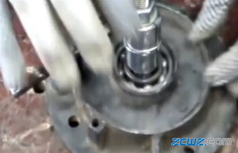 钢管和钢条架组装好以后,在把它安装在轴承的正上方,运用杠杆原理,转动钢条架上的手杆,螺丝钉就会转进轴承里面,然后在转动钢管侧面的手杆,轴承轻松就被带出来了,是不是很棒呢。这种方法可以省下好多力气呢。