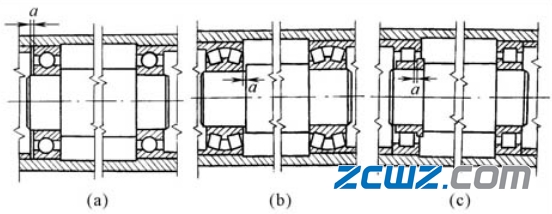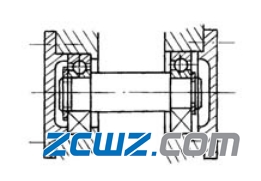 1)承受纯径向载荷或轴向载荷较小的联合载荷作用的轴。一般采用向心型轴承组成两端固定支承,并在其中一个支承端,使轴承外圈与外壳孔间采用较松的配合,同时在外圈与端盖间留出适当空隙,以适应轴的受热伸长。