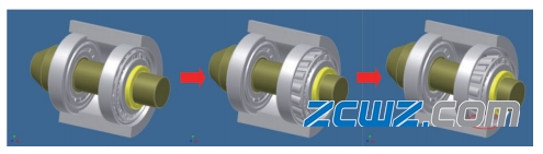 加之内圈内径有明显滑动痕迹,可以推测内圈与轴产生了相对滑动,原因可能是固定内圈轴向位置的锁紧螺母松动而使内圈脱离工作位置产生内组件窜出现象(图9),致使轴承旋转不良而产生受载区域局部应力集中,从而在交变应力的作用下,发生外圈疲劳破损现象。
