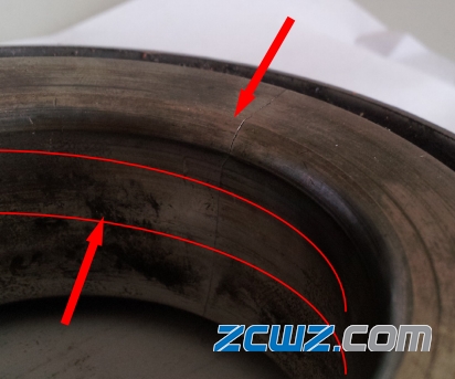 1)由于某些原因使轴承内圈承受倾覆力矩,在倾覆力矩作用下致使内圈异常受载而撕裂。
