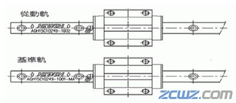2、正确区分基准导轨副与非基准导轨副(基准导轨上标有MA的标识__下图3,滑块上有磨光的基准侧面),将导轨的基准侧面与安装基面台阶的基准侧面相对,对准螺孔,将导轨轻轻地用螺栓予以固定。其余3根导轨依次于自由的方式安放在基面上。