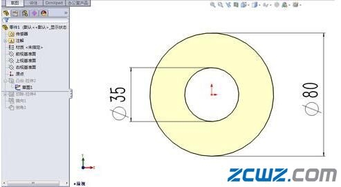 第四步:在草图栏选择"圆"命令,绘制草图,