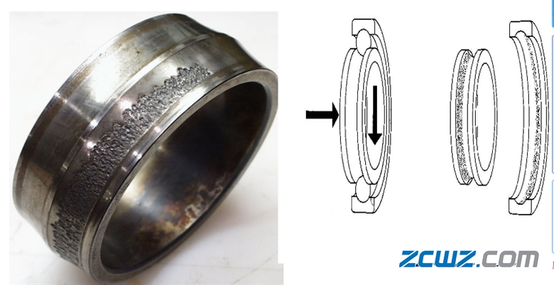 轴承剥离的产生原因一装配不当或润滑不良时,在过载应力的作用下产生的严重剥落。