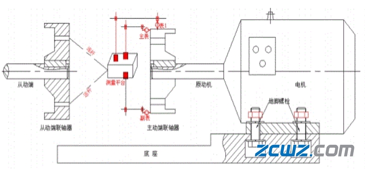 5)测量与记录:测量时,先测0°方位的径向读数a1及轴向读数s1。为了分析计算方便,常把a1和s1调整为零,然后两半联轴器同