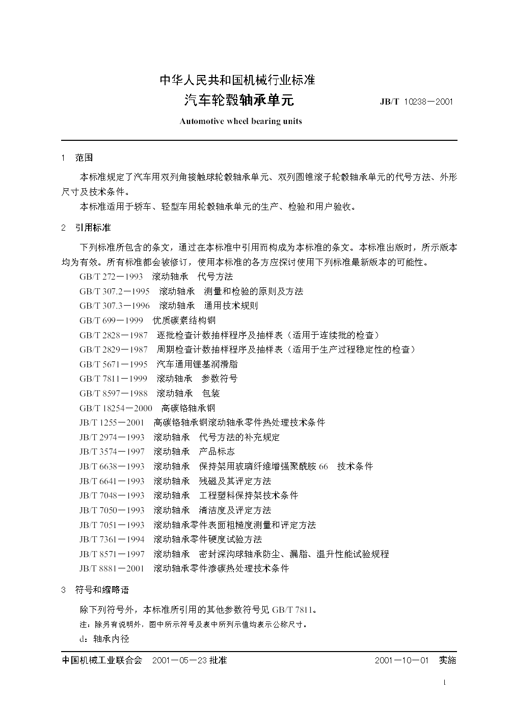 JB/T 10239-2001 滚动轴承 深沟球轴承卷边防尘盖技术