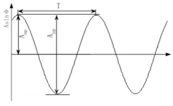 从前面的定义可以看出,振动的位移是振动中质点距离初始位置之间的距离。在整个时域中,振动的位置不断变化,每时每刻都有一个位移值。其中,质点距离初始位置最远的距离,对于机械设备来说,在整个振动所有位移值中,是影响最大的。同时对于一个振动而言,设备经历的最大变形量是两个峰值之间的距离,也就是这个振动位移量的峰峰值。在上图的振动波形中就是横轴两侧,振动幅值的绝对值之和。设备经历振动的最大变形量对设备自身的影响最大,因此在对振动进行位移值测量的时候,一般取峰峰值。