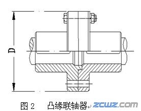 一、 凸缘联轴器(图2)装配时,两个半联轴器端面应紧密接触,两轴心的径向位移不应大于0.03mm。