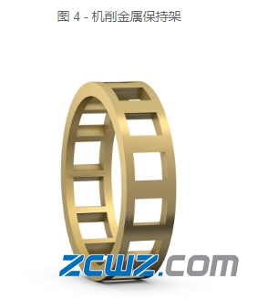 机削金属保持架由黄铜、钢或轻合金制成。 其可承受高速、高温、高加速度和高振动。