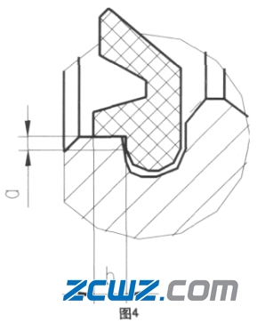 因此用增加密封圈挡边尺寸和加长密封圈头部靠挡边处直段长度a(见图4)的方法来增加其装配的牢固程度,同时,在现有密封槽有限的空间内适当加大密封圈挡边宽度b,增加密封圈在槽里的接触面积,接触面积越大,密封圈与外圈的摩擦力就越大,轴承摆动时,密封圈越不容易松动、自转,密封圈牢固程度就越高。