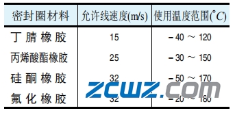 ④如表3所示,各种密封圈材料的允许线速度及使用温度范围有所不同,可根据用途进行选择。
