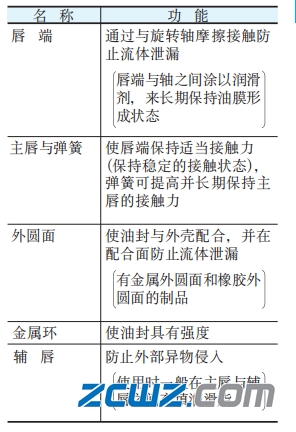 成品油封的多种类型和尺寸已标准化,油封各部分的名称和功能图(如图4和表1所示),其代表性类型如下表2所示。