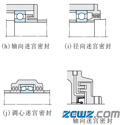 ②轴向迷宫密封(图h)便于装配,使用广泛,但密封性能不如径向迷宫密封(图i)。
