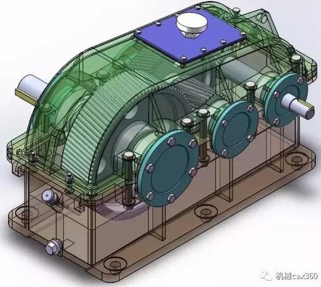 减速器主要由传动零件(齿轮或蜗杆)、轴、轴承、箱体及其附件所组成。