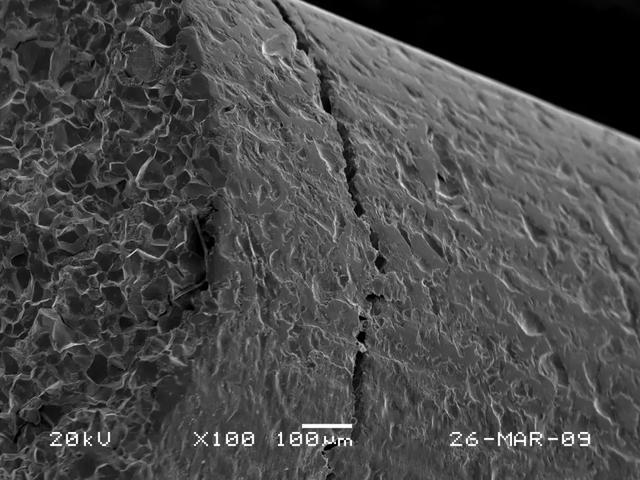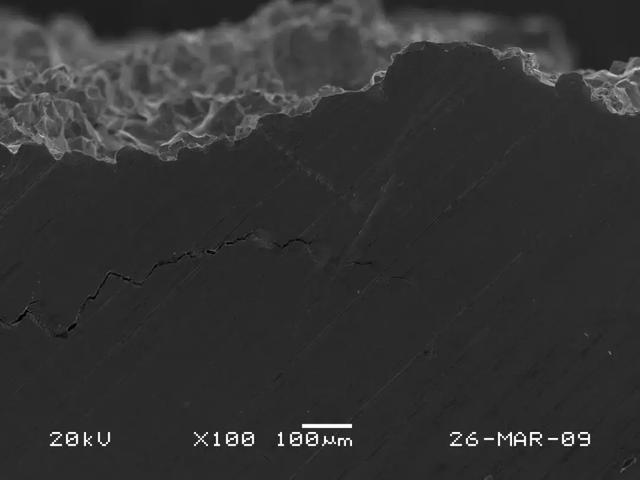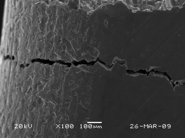 (2)任何零件的断裂失效,都是在零件所承受的外力超过了零件的本身所具有的抗力的条件下发生的。一般情况下,断裂源都位于零件的表面或次表面或在应力集中处萌生,如尖角、缺口、凹槽及表面损伤处等薄弱环节。