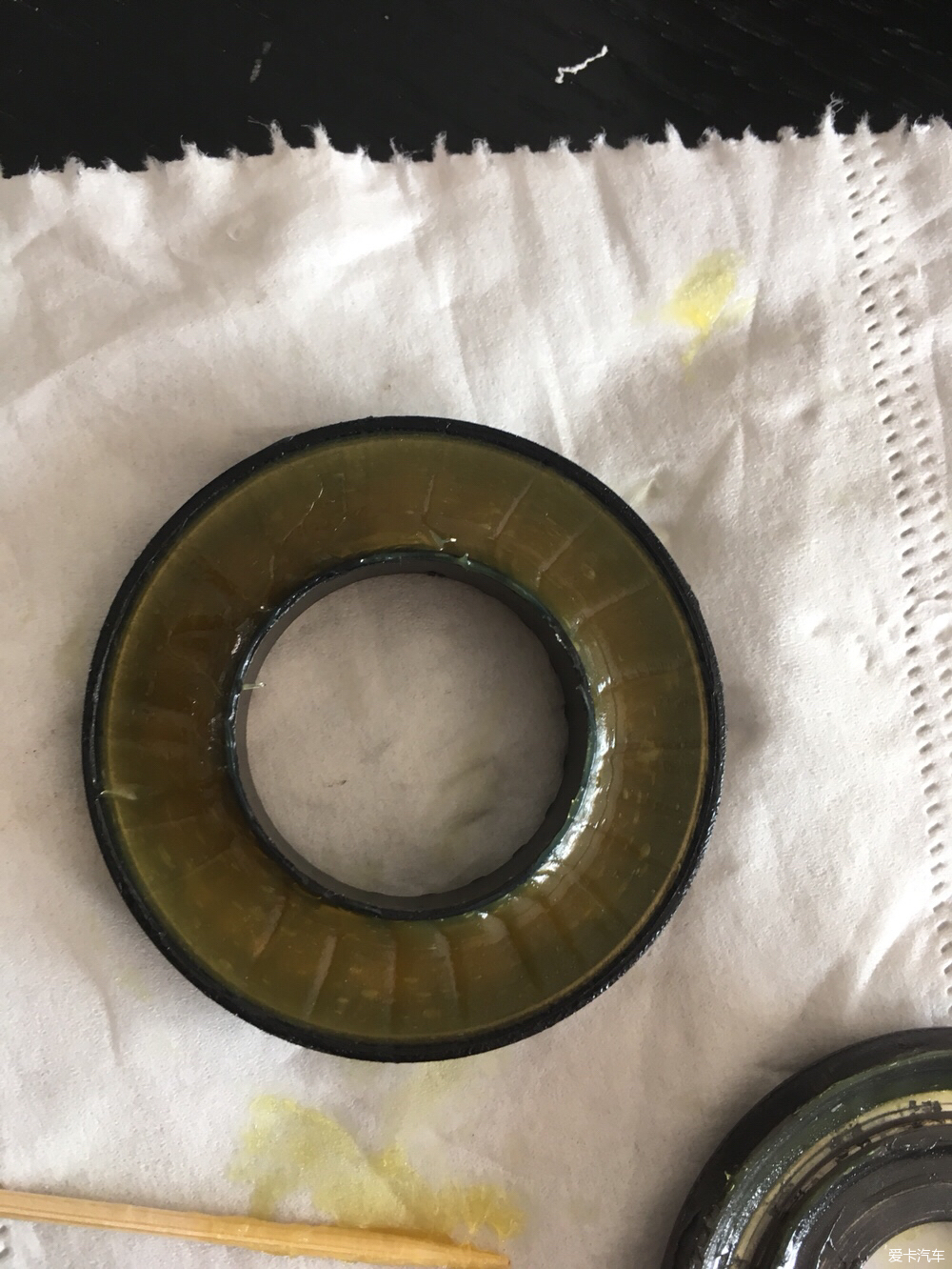 第二遍擦拭,缝隙里用牙刷清理干净 擦的一尘不染。可以注意下这个原车平面轴承的标示 下面有网购的