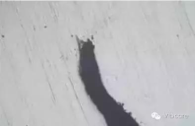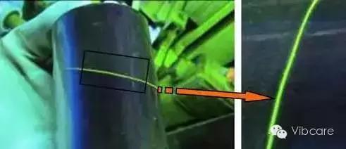 最好采用荧光磁粉进行探伤,使缺陷显示更为清晰、直观。锻造折叠的磁痕一般与表面成一定角度的线状、沟状及鱼鳞片状,如图1所示。