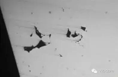 宜采用荧光磁粉进行探伤,使缺陷显示更为清晰。麻点孔洞为锻造过烧缺陷所致,如图3所示。